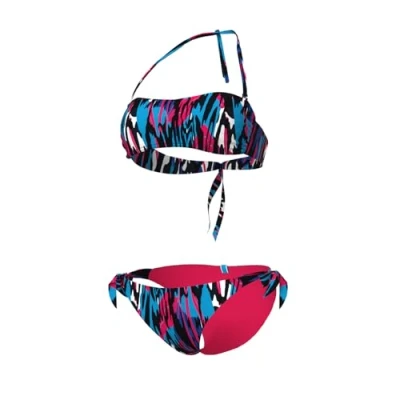 Stylish and comfortable women’s bikini with a vibrant print, celebrating arena’s natural connection with water. Designed for beach lovers with a perfect fit for ultimate comfort in and around the water. Extra soft, stretchy and quick-drying fabric for premium comfort Bandeau top with fixed cups. Briefs and top are fully lined and equipped with ties for a customized fit. Brief side length: 2/3 cm. The main fabric of the product has the OEKO-TEX STANDARD 100 certification. Ideal for swimming, leisure and sports activities at the beach and in the pool 87% Polyamide, 13% Elastane (eco-friendly fabric: 100% of Polyamide is recycled)