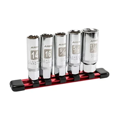 SPECIFICATIONS: This ARES Magnetic Spark Plug Socket Set is 3/8-inch drive and includes the following sockets: 14mm and 16mm Thin Wall and 9/16-inch, 5/8-inch, and 13/16-inch. Constructed of durable, heat treated Chrome Vanadium Steel, these sockets also feature a mirror polish finish for easy cleanup and a professional look with high visibility markings for easy identification. DESIGN: The five sizes give you the ability to work on a wide variety of applications. The sockets' interior magnets retain and protect the spark plug for easier installation, and the 14mm and 16mm Thin Wall Sockets feature a 12-point design for enhanced gripping power and fit. MADE TO LAST: The interior magnet in each socket won't wear out over time like traditional rubber gaskets, so this spark plug socket set can provide years of reliable use. Thanks to the convenient storage rail, you'll never have to worry about misplacing one, either, so you'll always have the size you need when you need it. These spark plug sockets meet and exceed ANSI/ASME standards. RELIABLE | EFFECTIVE | EFFICIENT: Users trust ARES to be quality tools. You are backed by our Performance Assurance Limited Lifetime Warranty. If you have any issues with your ARES Magnetic Spark Plug Socket Set, simply contact customer service for troubleshooting help, parts, replacement, or refund. ASPCA BUSINESS AMBASSADOR: We are proud to be part of the ASPCA Business Ambassador Program. If you have a pet, you realize they are more than a pet, they are part of the family. With your support, we're proud to help this great organization.