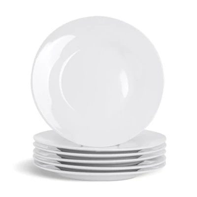 Argon Tableware 12x White 15.4cm (6 Inch) Wide Rimmed Side Plates Desert Serving Dinner Set Bread Plate Dishwasher and Microwave Safe Ceramic