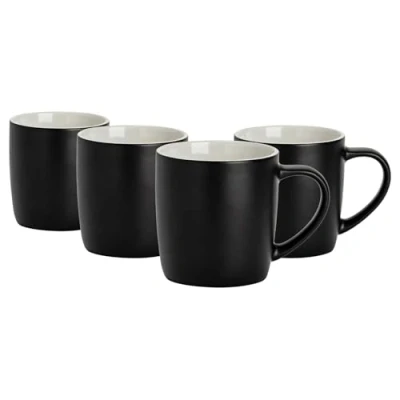 Argon Tableware Coloured Coffee Mugs Matte Black 350ml Pack of 4 Matt Ceramic Stoneware Tea Latte Cappuccino Cups Hot Chocoloate Colourful Mug Set with Handle