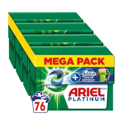 Ariel All in 1 PODS Laundry Detergent Washing Liquid Tablets/Capsules, 76 Washes (4x19), Stain Remover For Clothes, Platinum + Touch Of Febreze Odour Defence, Deep Down Clean And Anti Action