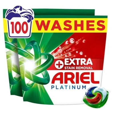 Ariel Platinum PODS®, Washing Liquid Laundry Detergent Capsules 100 Washes, +Extra Stain Removal, Remove Even 7 Day Dried In Stains