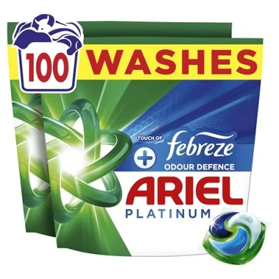 Ariel Platinum PODS®, Washing Liquid Laundry Detergent Capsules 100 Washes, +Touch Of Febreze Odour Defence, Remove Even 7 Day Sweat Odours