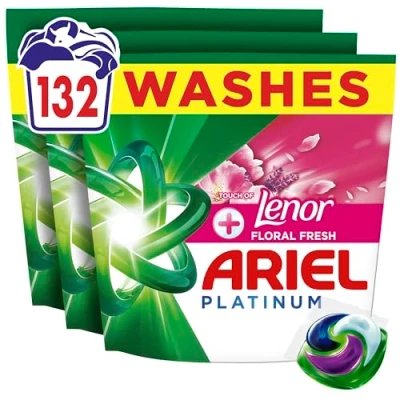 Ariel Platinum PODS®, Washing Liquid Laundry Detergent Capsules, 3 x 44 Washes, +Touch of Lenor Floral Fresh, 7 Day Long Lasting Freshness