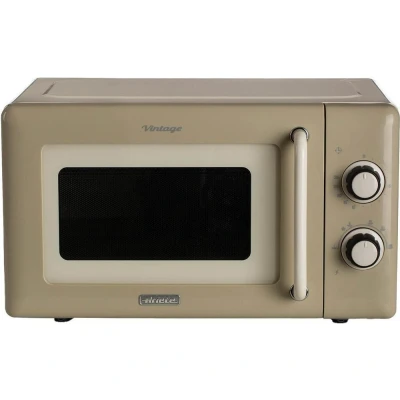 Powerful 800W Performance: Quickly and efficiently heat, cook, or defrost your favorite meals with consistent results every time. Spacious 20L Capacity: Ideal for individuals, couples, or small families – fits full-sized dinner plates and bowls with ease. 5 Adjustable Power Levels: Tailor the power to your needs – whether you’re gently melting butter or reheating leftovers in a flash. Easy Mechanical Controls: Classic rotary dials offer simple operation with no complex settings – just turn and go! 30-Minute Timer with End Signal: Set your cook time confidently with the intuitive timer – a clear signal lets you know when your food is ready. Defrost Function: Save time and reduce waste by defrosting meats, bread, or frozen meals safely and evenly. Stylish Vintage Design: Cream-colored casing with retro detailing brings a nostalgic feel while complementing any countertop aesthetic.