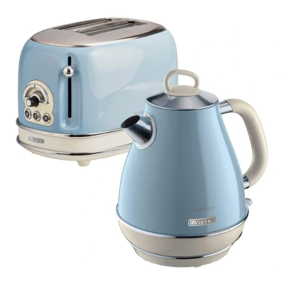 Get everything you need to prepare a tasty breakfast. This Ariete bundle includes a 2-slice toaster and a kettle, so you can enjoy coffee and crunchy toast first thing in the morning. ___________________________________________________________________________Ariete Vintage 155 2-Slice Toaster - Blue- 6 browning levels let you decide how crunchy you want your toast- You can easily defrost frozen bread or reheat cold slices- With a removable crumb tray, it's easy to keep your worktop clean and tidy- The toaster's retro design will add a touch of vintage style to your kitchen___________________________________________________________________________Ariete Vintage 2869 Jug Kettle - Blue- Prepare hot drinks for your whole family with the 1.7-litre capacity- The 360° base makes the kettle easy to use whether you're left- or right-handed- The removable filter keeps limescale out of your drinks, so you can enjoy better-tasting tea and coffee- Safety features like the cool-touch housing and auto switch-off will give you extra peace of mind