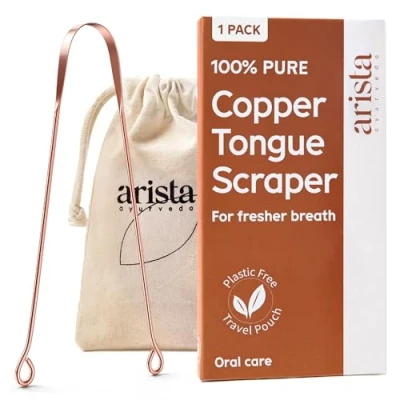 Arista Tongue Scraper 1 Pack, Cleaner for Adults, Copper Scraper, Bad Breath Treatment Ayurveda Products, Oral Care Product