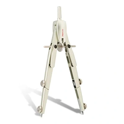 The Aristo Studio Precision Compass is a reliable and indispensable companion for students, students and technicians in the field of geometry and technical drawing in everyday work By pressing the two locking handles, the compass can be quickly adjusted. The fine adjustment is made by subsequent turning on the centre wheel of the compass Both legs have a joint and can be bent. The patented mechanism prevents the legs from bending away when drawing. The maximum Circle diameter is 340 mm The silver lacquered compass is made of die-cast zinc and the head is made of plastic. It can hold inserts, such as extension rods or adapters for pens, with a diameter of up to 4 mm Box contents: Aristo Studio AR55630 spring bow compass, box of 2 Compass leads and 1 piece. Replacement needle, plastic case