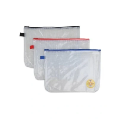 Transparent heavy duty multi purpose case, made with 500 micron reinforced mesh material and is water resistant. Available in assorted colour zips(Black, Blue & Red)plus a hanging loop. Transparent with assorted colour zips Size 360 x 260mm) Single PLEASE NOTE: The colour will be selected randomly.
