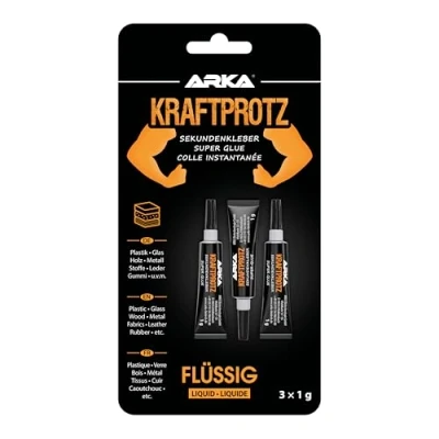 ARKA 3x 1g superglue extra strong Incl. anti drying tip KRAFTPROTZ Liquid Universally usable for gluing plastic, glass, wood, stone, metal and much more.