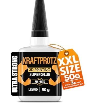 ARKA Kraftprotz 3D Print 50 g Super Glue Extra Strong Ideal for Bonding PLA, ABS, PETG and TPU Includes Special Tip to Prevent Drying Out Liquid