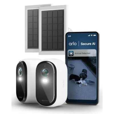 Arlo Essential 3 HD Video Security Camera Outdoor Wireless & 2 Solar Panels, Battery Operated, Colour Night Vision, Light, Siren, Way Audio WiFi, Secure Free Trial, Cameras, White