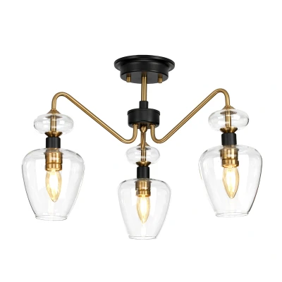 Armand 3 Light Semi Flush, Aged Brass, Glass Shade