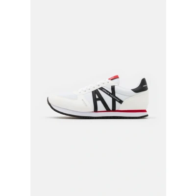Armani Exchange Trainers white/red/blue Sale at Zalando UK | Upper material: imitation leather/ textile/Lining: textile/Sole: synthetics/Insole: textile | Sale order at Zalando UK! Size: 9. Color: White/red/blue. Pattern: plain.
