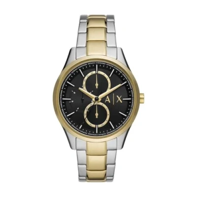 42mm case, 20mm band width, mineral crystal, Quartz movement with multifunction analog display, imported. Round at least 50% recycled stainless steel case, with a black dial. Two-Tone, stainless steel bracelet. Water resistant up to 50m: Wearable while swimming in shallow water.