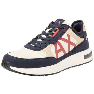 Armani Exchange Men Dusseldorf Embossed Geometric Motifs Sneaker, Navy Safari Red, 7 UK