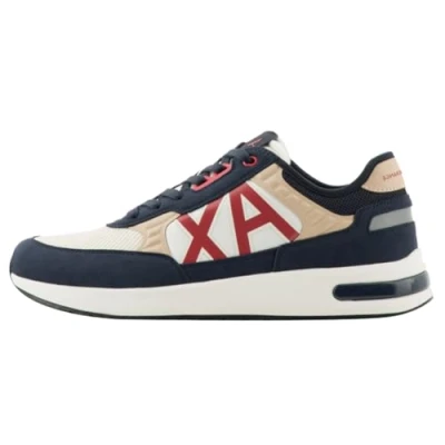 Armani Exchange Men Dusseldorf Embossed Geometric Motifs Sneaker, Navy Safari Red, 8 UK