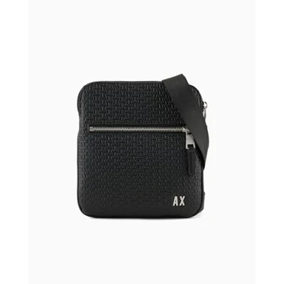 Armani Exchange Men Elba, Essential, Logo All Over, Front Zip Flat Crossbody, Black, One Size