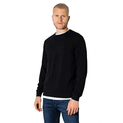 Armani Exchange Men's Crew Neck, Front Embroidered sur Ton Logo Sweater, Black, Small