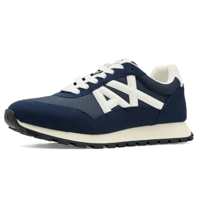 Armani Exchange Men's Essential Drop Mesh Details Trainers, Navy Off, 12 UK