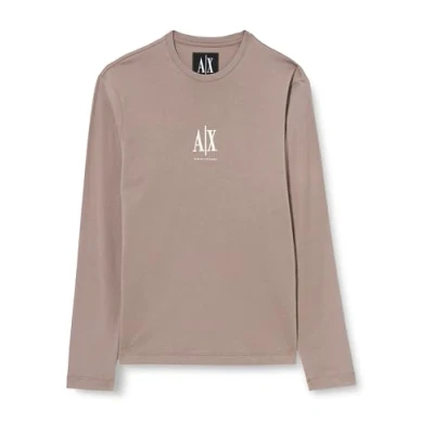 Armani Exchange Men's Icon Project, Embroidered Logo, Long Sleeve, T Shirt, Brown, XXL