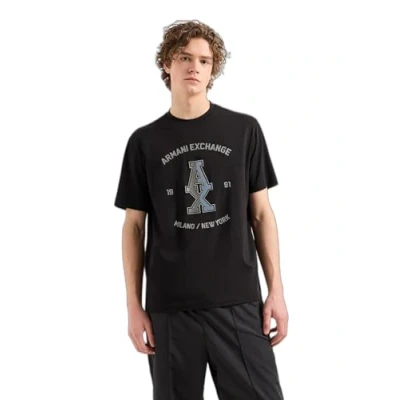 Armani Exchange Men's Large Central Stacked Ax Logo Milanonew York Text Surrounding Regular Fit Tee T Shirt, Black, XL