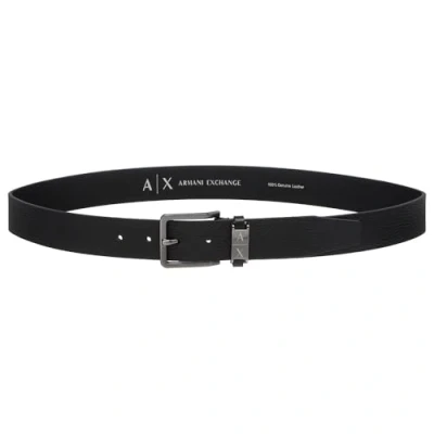 Armani Exchange Men's Monocolor, Silver Buckle, Mini Logo Plate Tongue Belt, Black, 115 cm