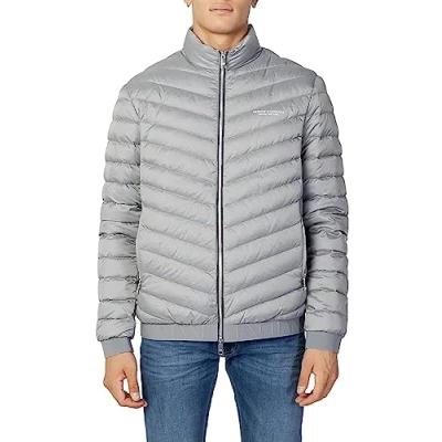 Armani Exchange Men's Quilted Down Milano/New York Logo Zip up Jacket Alternative Coat, Melange Grey/Navy, L