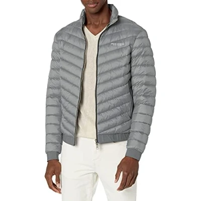 Armani Exchange Men's Quilted Down Milano/New York Logo Zip up Jacket Alternative Coat, Melange Grey/Navy, XXL