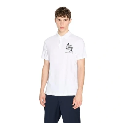 Armani Exchange Men's Regular Fit Cotton Jersey Eagle Logo Polo Shirt, White, XXL