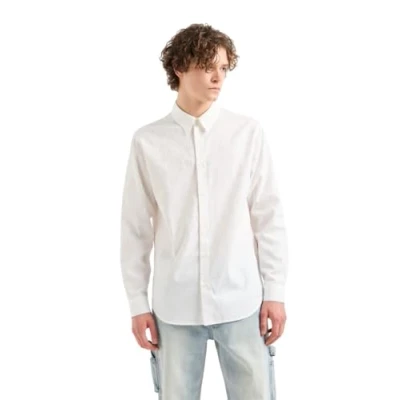 Armani Exchange Men's Regular Fit Long Sleeve Jacquard Cotton All Over Logo Button Down Shirt, Off White, M
