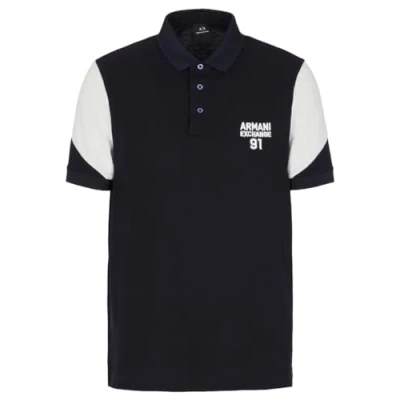 Armani Exchange Men's Short Sleeve Colo Block 91 Branded Polo Shirt, deep Navy, S