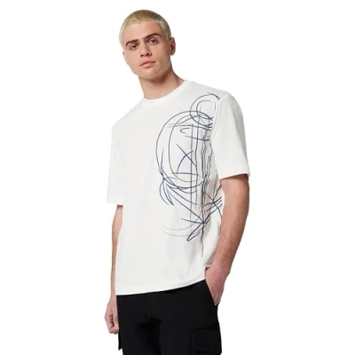 Armani Exchange Men's Short Sleeve Regular Fit Side Sketch T Shirt Off White L, White, L