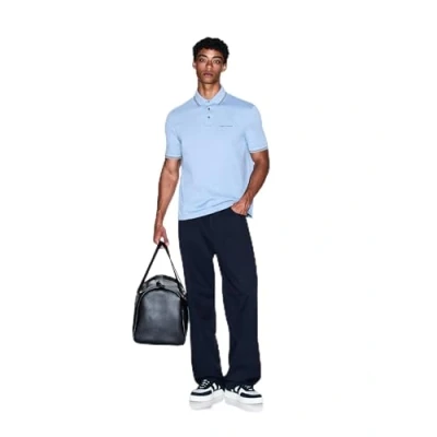 Armani Exchange Men's Small Text Logo Pique Polo Shirt, Faded Denim, XL