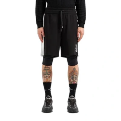 Armani Exchange Men's Stacked Logo Cotton French Terry Shorts, Black/Off White, Small