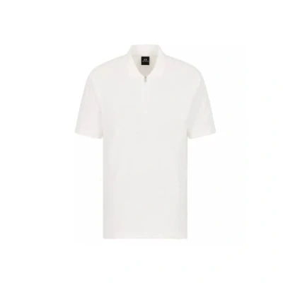 Armani Exchange Men's The Gird, Sustainable, Logo Tape, Front Zip Polo Shirt, Off White, XS