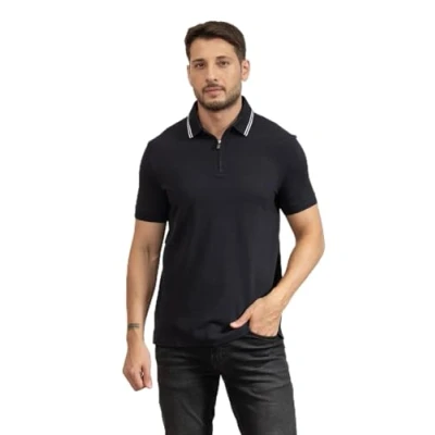 Armani Exchange Men's Urban Short Sleeve Zip Closure Collar Polo Shirt, deep Navy, L