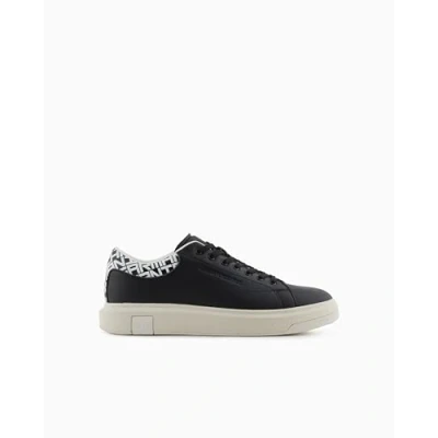 Armani Exchange Men's ActionLeather,sidelogo,Laceup Sneaker, Black+Off White, 11 UK