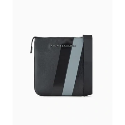 Armani Exchange Men's Dylan, Essential, Stripe Detail Flat Crossbody, Black/Black, Black, One Size