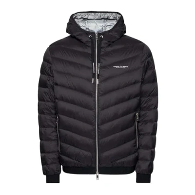 Armani Exchange Men's Hooded Quilted Down Milano/New York Logo Zip up Jacket, Black/Melange Gray B, S