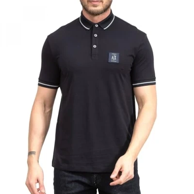 Armani Exchange Men's Regular Fit Cotton Jersey Metallic Icon Patch Polo Shirt, Navy, L