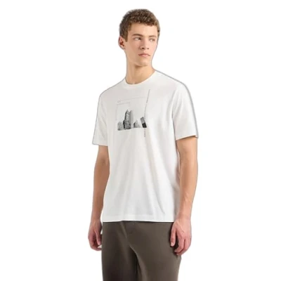 Armani Exchange Men's Scattered Graphic Elements with Iconic Building Image Regular Fit Tee T Shirt, Off White Ny, XL