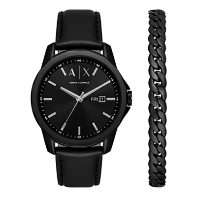 Armani Exchange Watch for Men Quartz/3 Hand Day Date movement 44mm case size with a Leather strap AX7147SET