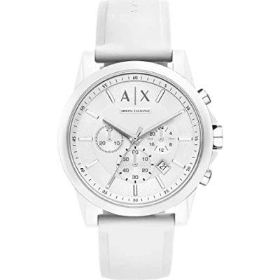 Armani Exchange Watch for Men, Quartz Chronograph Movement, 44 mm White Resin Case with a Silicone Strap, AX1325