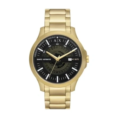 Armani Exchange Watch For Men, Quartz Three hand date Movement and 46mm Case Size with Stainless steel strap, Gold tone black