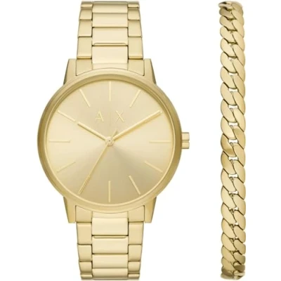 Armani Exchange Watch for Men, Quartz Three Hand Movement, 42 mm Gold Stainless Steel Case with a Strap, AX7144SET