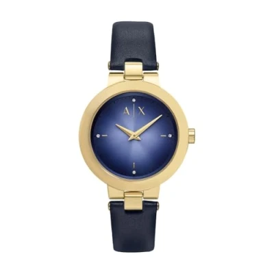 Armani Exchange Watch for Women, Quartz Two Hand Movement and 36mm Case Size with Stainless Steel or Leather Strap, Gold Tone Light Blue