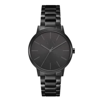 This Armani Exchange Cayde Analogue Watch for Men is the perfect timepiece to wear or to gift. It's Black 42 mm Round case combined with the comfortable Black Stainless steel will ensure you enjoy this stunning timepiece without any compromise. Operated by a high quality Quartz movement and water resistant to 5 bars, your watch will keep ticking. This fashionable and classic watch matches any outfit at any occasion, it adds style to your life. High quality 21 cm length and 20 mm width. Black Stainless steel strap with a Fold over with push button clasp. Case diameter: 42 mm, case thickness: 7 mm, case colour: Black and dial colour: Black