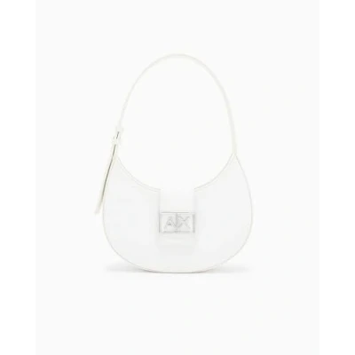 Armani Exchange Women Jodie, Sustainable, Metal Silver Logo Shoulder Bag, Off White, One Size