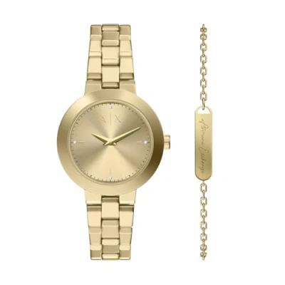 Armani Exchange Women's 36MM Gold Tone Stainless Steel Watch, AX7177SET